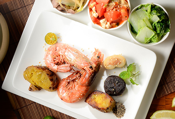 肥美新鮮明蝦,肉質鮮美Q彈,干貝肉質扎實,鮮嫩多汁味美,精緻料理的風味都可以在此品嚐得到。